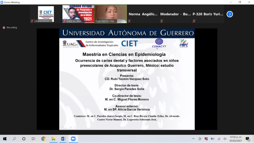 Participación de los estudiantes en el 1er Congreso de Estudiantes de Posgrado, del 1 al 5 de febrero 2021