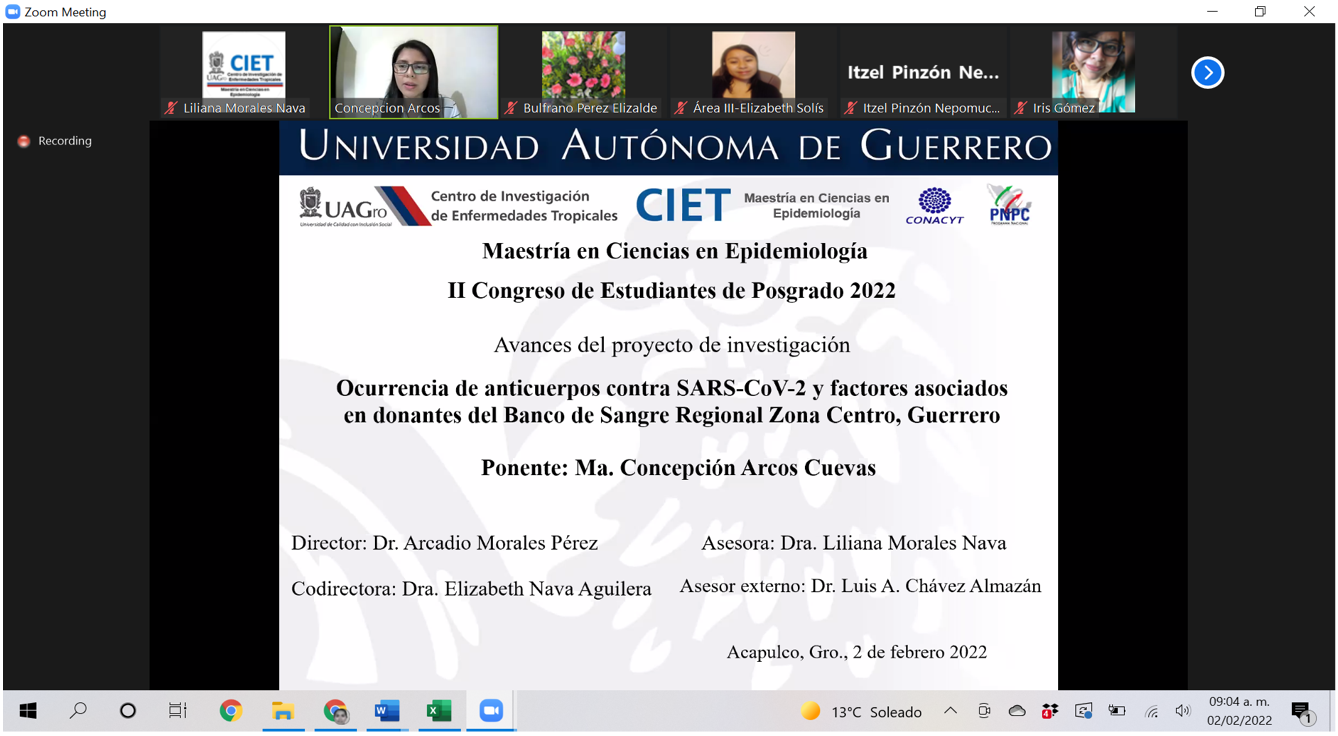 Participación de los estudiantes en el II Congreso de Estudiantes de Posgrado de la UAGro, del 1 al 4 de febrero del 2022