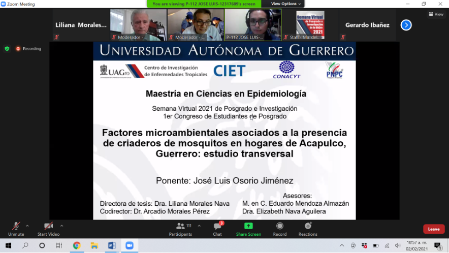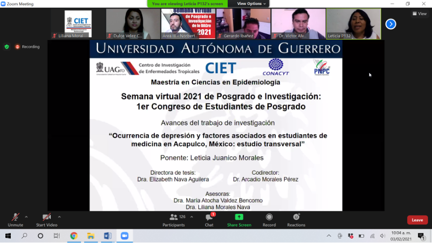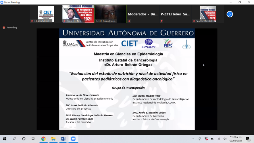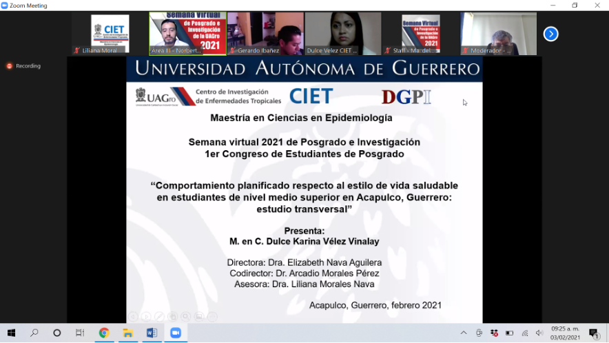Participación de los estudiantes en el 1er Congreso de Estudiantes de Posgrado, del 1 al 5 de febrero 2021
