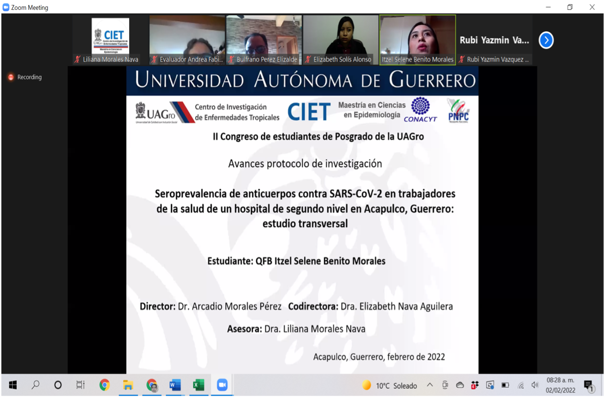 Participación de los estudiantes en el II Congreso de Estudiantes de Posgrado de la UAGro, del 1 al 4 de febrero del 2022